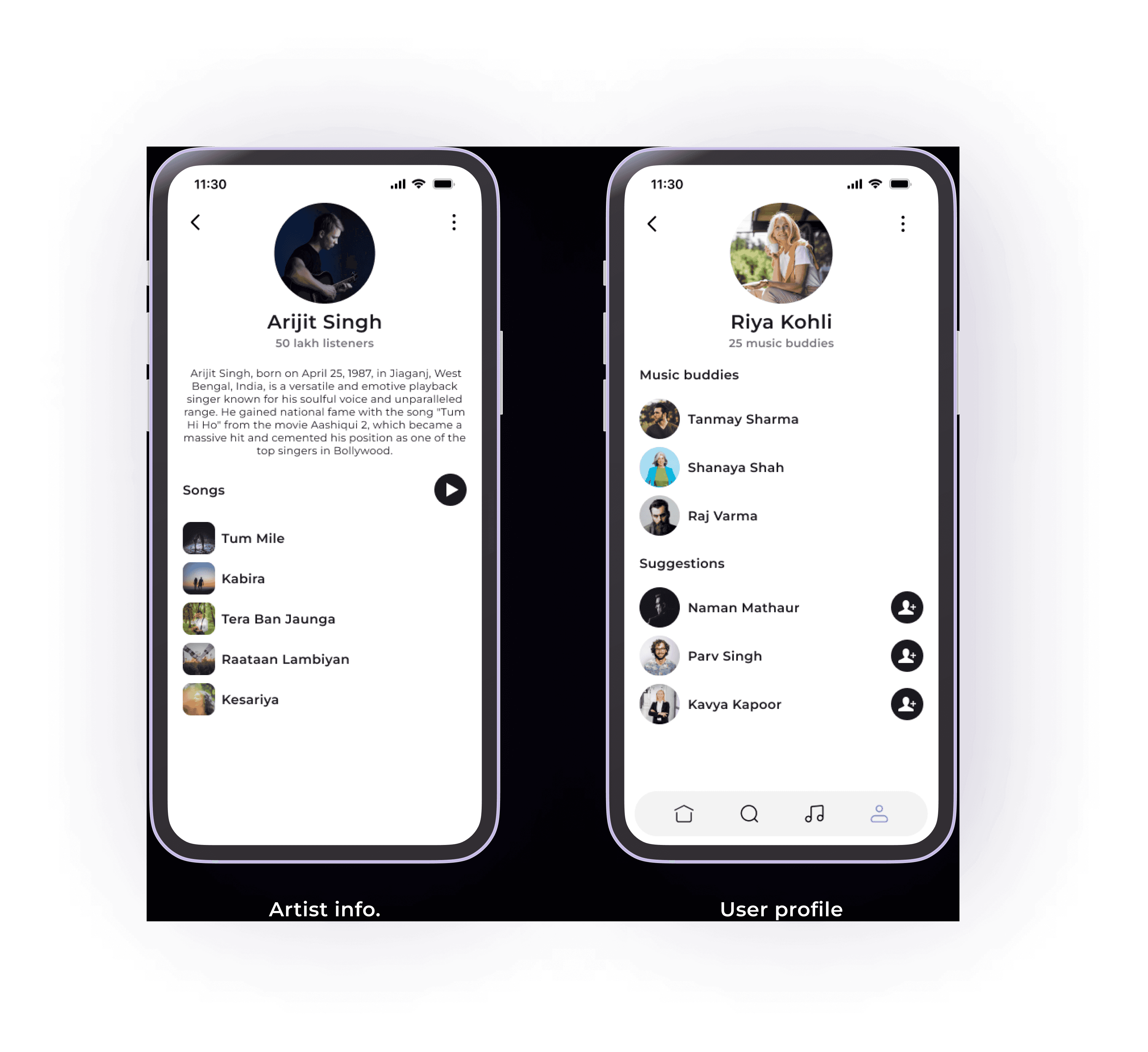 Parv enjoys exploring new music while working, traveling, or relaxing. As someone immersed in design trends, he is critical of outdated interfaces. He frequently uses Tinder, where swipe gestures feel modern, and he wishes music apps would adopt similar, more interactive designs.