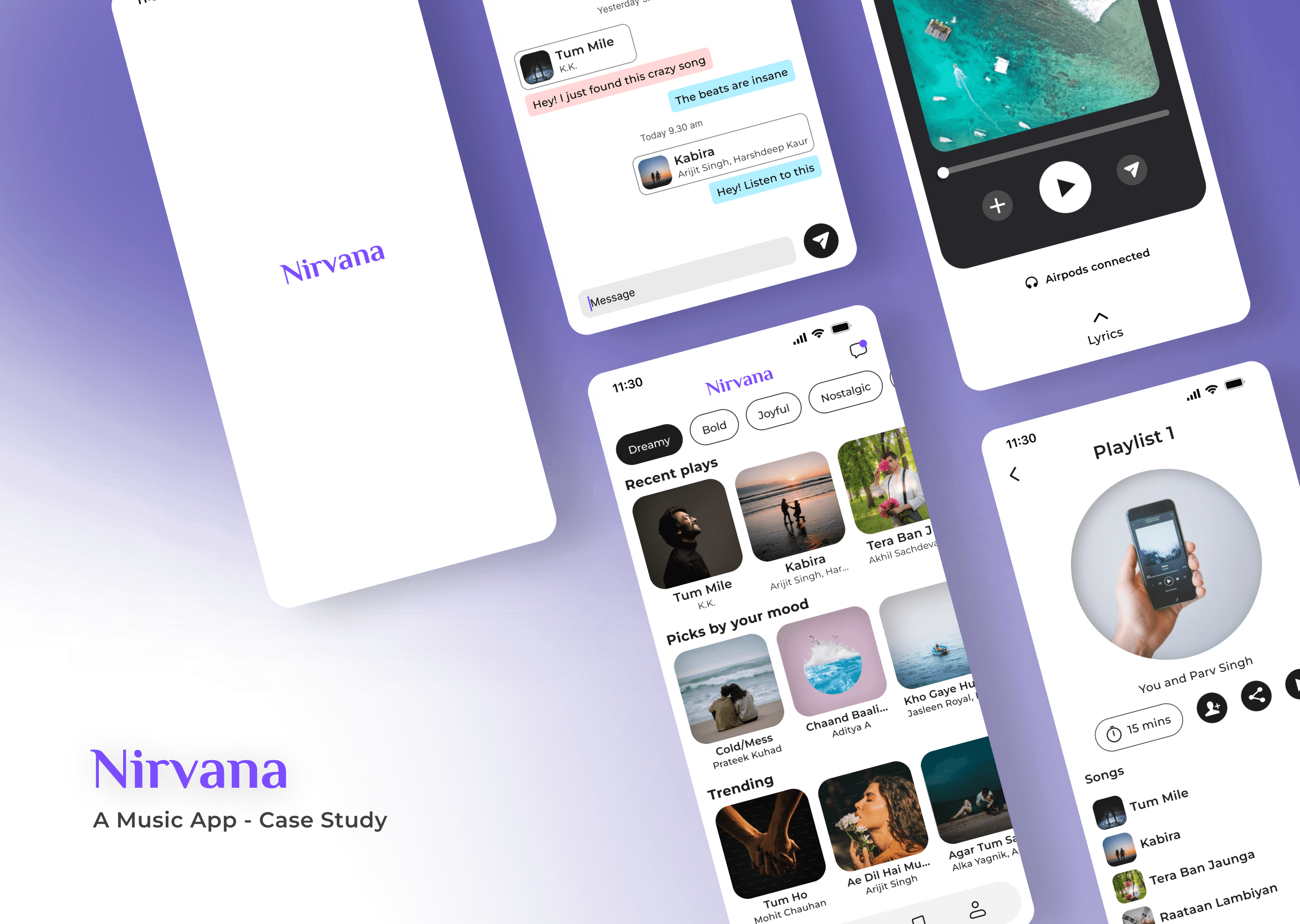 Nirvana is an app created to help people connect through music. The app aims to blend music listening and social connection offering seamless user experience. While popular apps lack the social aspect of sharing and collaborating features. Nirvana aims to fill this gap creating a space where users can connect through music.